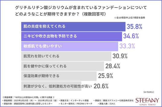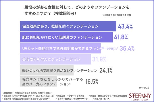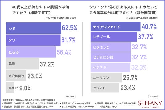 銀座ステファニー化粧品株式会社(本社:東京都港区、代表取締役:吳 相汶)は、皮膚科医を対象に、「40代以上の肌悩みと対策」に関する調査を実施しました。