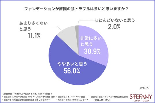そこで、「ファンデーションが原因の肌トラブルは多いと思いますか?」と質問したところ、約9割の方が多いと思うと回答しました。