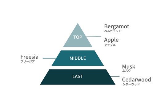 爽やかなアップル、ベルガモットが香りたつ、みずみずしさあふれる香り。
