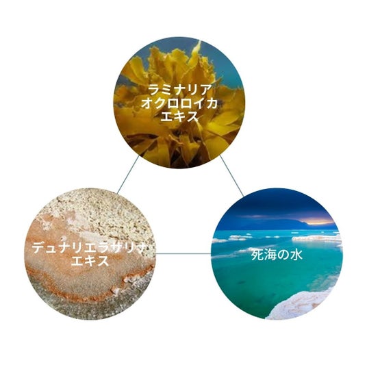 ミネラルを豊富に含む海藻エキスや、死海の水を贅沢に配合したアクアブレンドコンプレックス処方で、うるおいを与え、乾燥から肌を守ります。