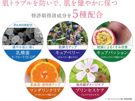 ハス花エキスを整肌成分として配合しているのに加え、肌のトラブルや刺激から守り、うるおいを与え、ダメージをケアする各種ハーブを複数配合。さらに5つの特許成分が、弾力やくすみ*¹など多角的にケアして、しなやかな美しい手肌に整えます。