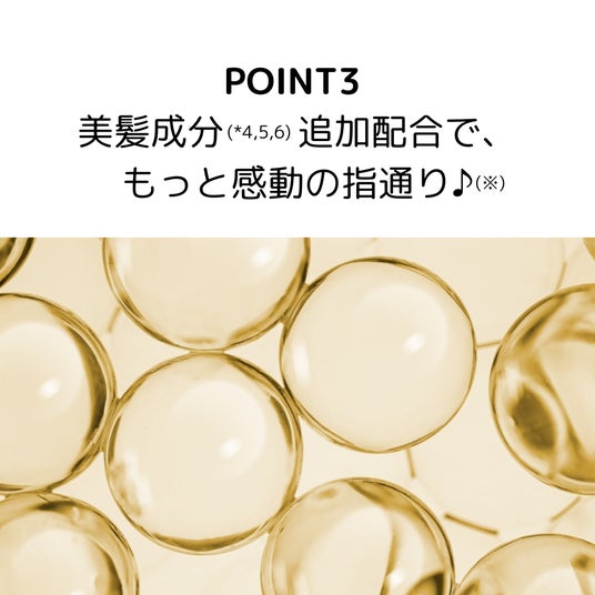 パールプロテイン(*4)やトリプルコラーゲン(*5)、リピジュア(R)︎(*6)などの保湿成分を配合し、毛先まで潤いに満ちた、なめらかな指通りを目指しました。