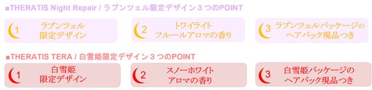 株式会社ヴィークレア(本社:東京都港区、代表取締役社長:岸野洋之)は、夜を味方につける、高機能ナイトケアブランド「セラティス」よりディズニープリンセス限定デザインを『THERATIS Night Repair (セラティスナイトリペア)/ラプンツェル』、『THERATIS TERA Premium EX Night Moist(セラティステラプレミアムEX ナイトモイスト) /白雪姫』の2種同時展開で数量限定発売いたします。