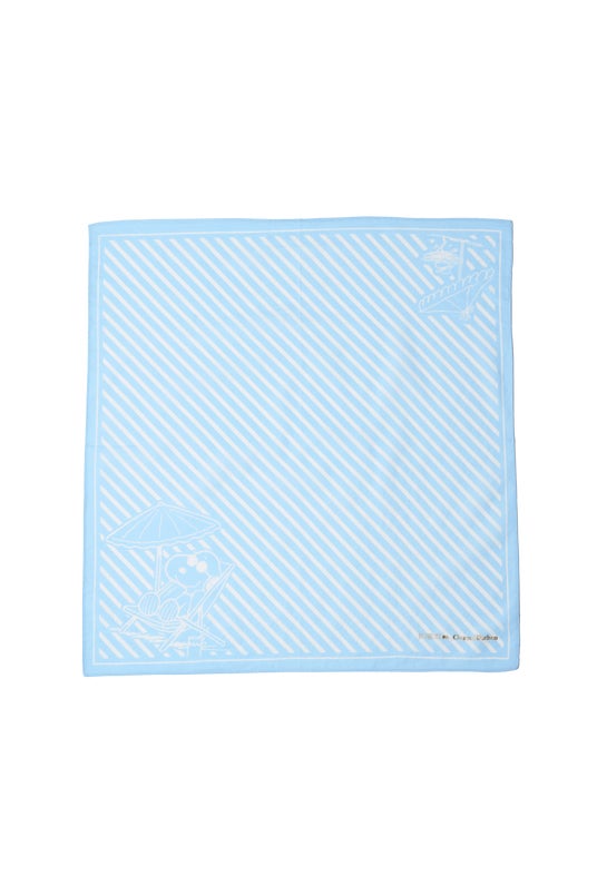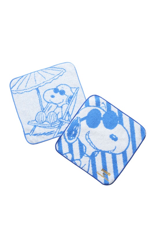 JOE COOLが登場するコミックのデザインと、バイアスのストライプにリゾートでくつろぐJOE COOLとウッドストックのデザインの2種。スカーフやバンダナとしてコーディネートのアクセントにしたり、手土産などのラッピングとしての活用も。