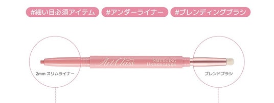 スマージングアンダーライナーは、”拡張メイク”の最大のポイントである三角ゾーンをメイクしやすいよう、ペンシルのスリムな設計と、自然に馴染む“粘膜カラー”にこだわっております。ペンシルはライナーとシャドウの間のようなテクスチャーでするすると書きやすく、きりっとした印象を演出してくれる猫目メイクアップから、ふんわりと柔らかな印象を与えるナチュラルなタレ目メイクアップまで、幅広いメイクアップをお楽しみいただけます。また、ラインをぼかし、自然なメイクアップをかなえてくれるブレンドブラシと2in1になっており、1本で理想のアイメイクが完成。にじむことなく長期間維持続します。