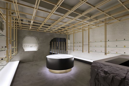80種以上の香水が、ブランドの香り創作に対する考えや価値観を表現した空間に並ぶ