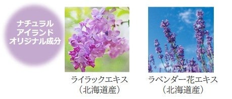 北海道で栽培されたライラックとラベンダーの花のエキスを贅沢に配合。肌をなめらかに整えます。ライラックエキスはナチュラルアイランドオリジナル成分です。