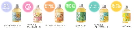 バスルームいっぱいに広がる香りと共に、ライラックエキスやラベンダー花エキスなどの植物エキスやカレンデュラオイルなどの美容オイルがとけ込んだミルク色のしっとりやわらかなお湯が、素敵なバスタイムを演出します。