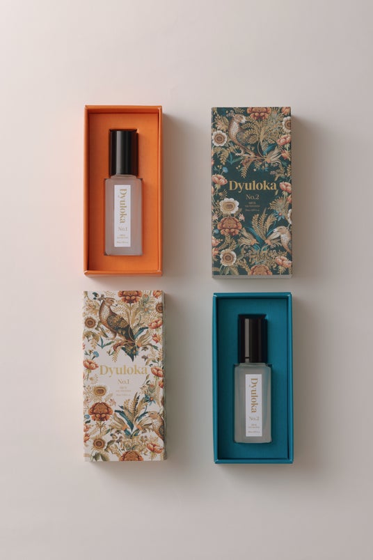 Dyuloka ヘアオイル No.2 (左)と Dyuloka ヘアオイル No.1 (右)