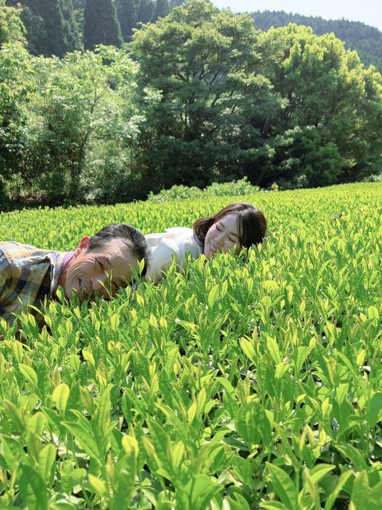 あらゆる治療法を試しても状況は改善されない依口は、いつも身近にあった緑茶を傷んだ肌にあててみたそうです。久しぶりの優しくて気持ち良い感覚。「緑茶をお肌に使うことは出来ないだろうか。」福岡県出身の彼女はそこから茶葉を作っている農家を徹底的に調べまくり、一軒の農家にたどり着きます。それは雲に近い場所にあり、生活用水が一切入り込まない美しい八女の棚田でした。そこには60年間無農薬で作られてきた大幸園さんの「こだわり」の茶畑が広がっていたのです。もちろん大幸園さんにとっても「お茶の葉を化粧品の材料に」なんて経験の無いことでした。先ずはお手紙を書き、想いを伝え、最後は両親と夫を連れて4人で会いに行ったそうです。そしてその時の、現在72歳になられる大橋さんの答えは意外なものでした。「よかばい!!︎よかばい!!︎おもしろい!!︎やってみよう!!︎」。分野は違っても、地球の恵みに囲まれ生きてきた大橋さんだからこそ、未知なる自然の可能性を信じ、彼女の想いを全身で受け止めてくれたのかもしれません。