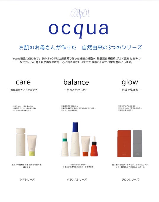 2024年11月のブランドリニューアルに伴い、新ブランド「ocqua」~天然由来の3つのシリーズ~が誕生しました。