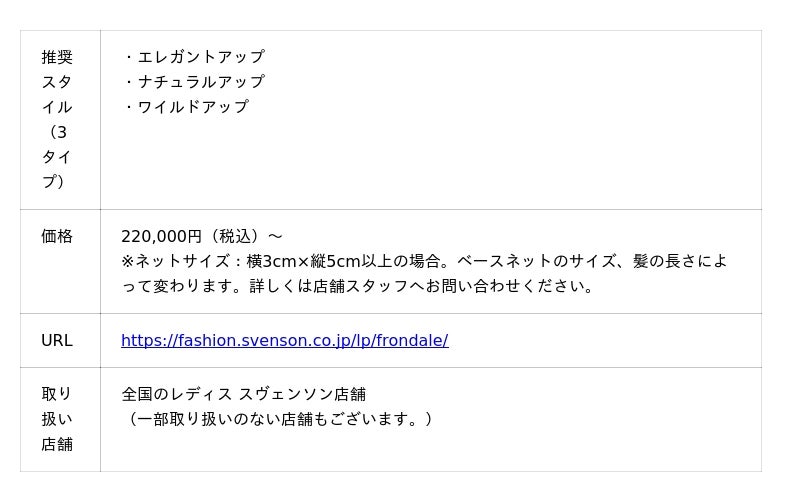 株式会社スヴェンソン(本社:東京都港区、代表取締役社長CEO 児玉義則)レディス事業部は、フルオーダーヘアピースの新商品「フロンデール」を2025年6月5日(木)より全国のレディス スヴェンソン店舗にて発売開始いたします。