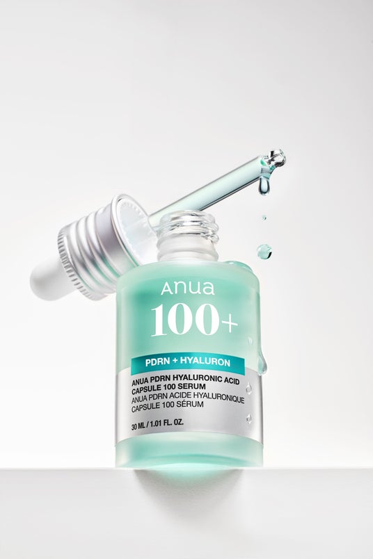 ・PDRN ヒアルロン酸カプセル 100 セラム Anua の「PDRN ヒアルロン酸 100 セラム」は、成分の含有量ではなく、成分の配合バランスに着目し開発しています。肌にうるおいやハリを与える「ヒアルロン酸*¹」「コラーゲン*²」「PDRN*³」を合わせることによって、肌をすこやかな状態へ導くブースティングケアをサポートします。 また、韓国初の 100%スマートカプセル工法を適用することで、角質層のすみずみまで水分を満たし、うるおいによってツヤのある「水光肌」を演出します。