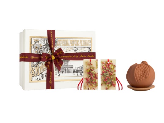 ほのかに甘く、パウダリーな香りが人気のサンタ・マリア・ノヴェッラの「ザクロ」のホームフレグランスセット。ザクロの果実はその王冠のような形状から、豊かさや繁栄の象徴として古くからヨーロッパで重宝されてきました。ギフトを贈る方の成功を願う気持ちを洗練された香りとともにお届けします。