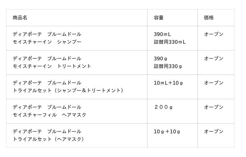 「ディアボーテ HIMAWARI Bloom d’Or(ブルームドール)」は、45歳頃から髪のゆがみに加え、年齢とともに髪の保水力や栄養を届ける機能が低下し、髪はやせ細り、思うようにまとまらない“気まぐれ髪”へと変化してしまっていることに着目。もろく弱った髪内部の密度を高め、芯から美しい髪を目指す「髪の体幹美容」を採用したヘアケアシリーズです。