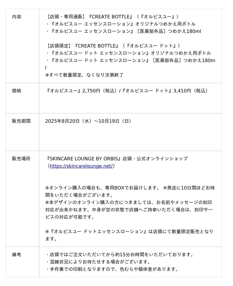 参加条件:SKINCARE LOUNGE BY ORBIS公式SNSフォローの上、施設の写真とイベントの感想を以下ハッシュタグと共にSNS(Instagram・X)に投稿