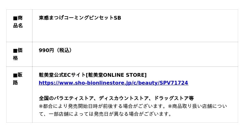 化粧品、化粧雑貨、服飾雑貨及びキャラクター雑貨等の企画・製造・販売、コンタクトレンズの企画・販売を行う粧美堂株式会社(本社:東京都港区、代表取締役社長:寺田正秀、以下 粧美堂)は、毛束感まつげを作る3in1ツール『束感まつげコーミングピンセット』の限定カラー「シルバーブルー」を、2025年8月12日(火)より発売しました。