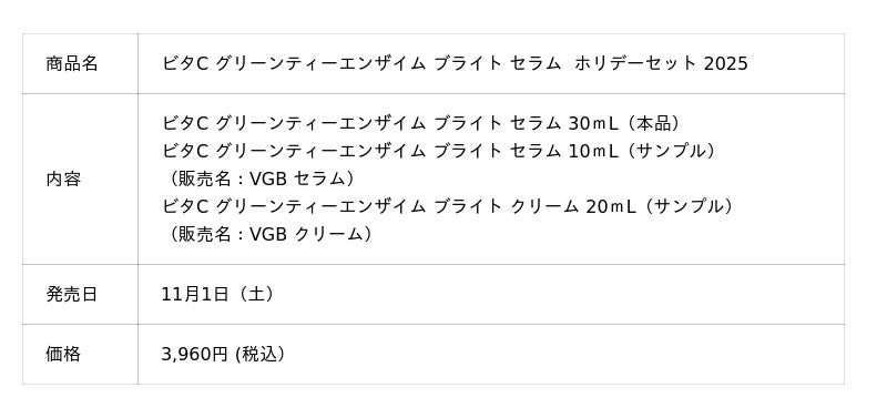 ビタC グリーンティーエンザイム ブライト セラム ホリデーセット 2025