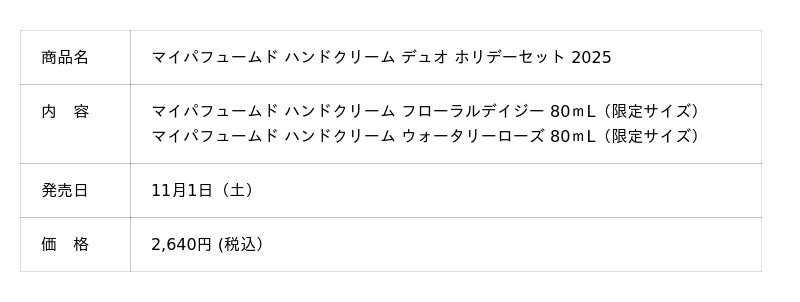 マイパフュームド ハンドクリーム デュオ ホリデーセット 2025
