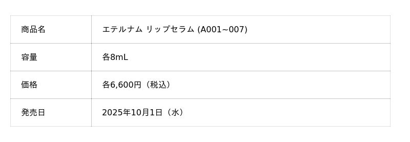 『永遠の美しさへの夢が、 夢に終わらない未来を創りあげること』を使命に掲げる、化粧品の研究開発・製造販売を行う株式会社エテルナム(本社:東京都渋谷区、代表取締役:松本隆明)は、2025年10月1日(水)「唇育(R)」という新発想の「ヒト臍帯由来間葉系幹細胞培養上清液」を高配合する「エテルナムリップセラム」にこの秋フィットする待望のくすみカラー2色を追加。公式ECサイト・amazon・楽天・Yahooモールで発売いたします。