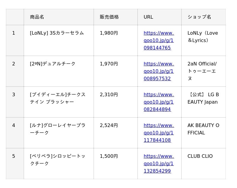 インターネット総合ショッピングモール「Qoo10」を運営するeBay Japan合同会社(本社:東京都港区、代表取締役:グ ジャヒョン)は、Qoo10で人気のコスメカテゴリーの中から、『リップ』『アイシャドウ』『チーク』と、月替わりで1アイテムをピックアップした、月間販売数TOP5※をご紹介していきます。