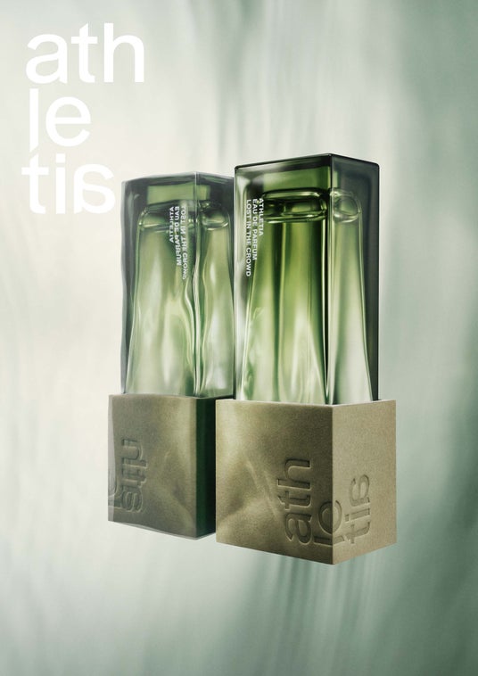 すっきりとスタイリッシュでモダン、かつ驚きに満ちたパッケージはathletiaを象徴するグリーンのボトルを採用。FSC認証紙で出来たスタンドに逆さに立てて収め、その香りとともに、自分に戻れる基地(ベース)として、倒立しても揺らがないしなやかで美しい軸を体現しています。