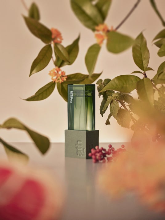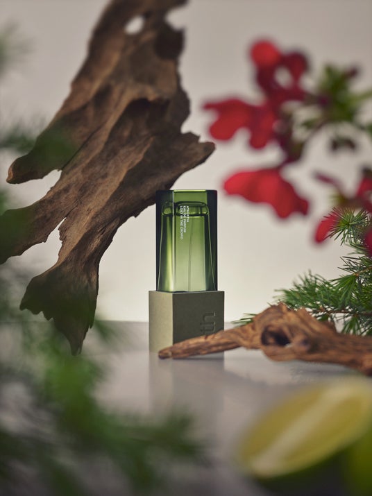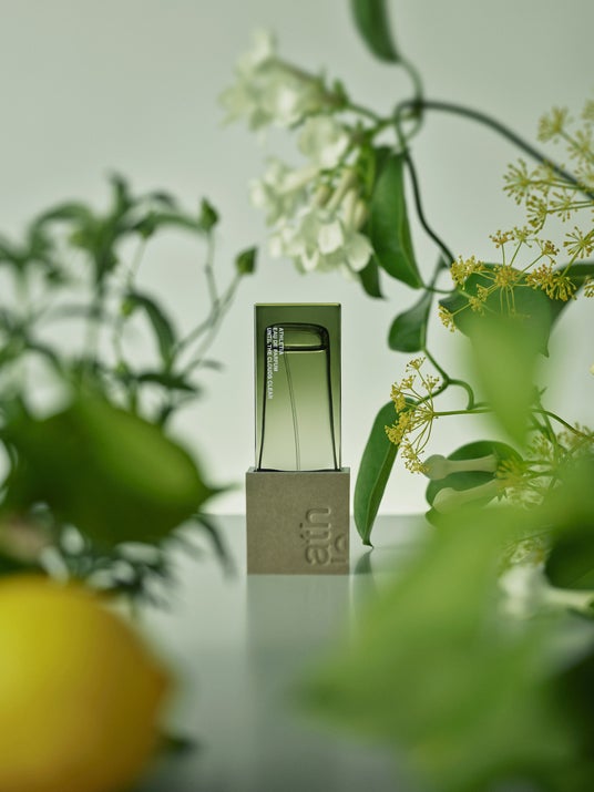 ガラスボトル、シンプルなキャップ、スプレー、FSC認証紙のスタンドは、デザインと、分別しやすい設計を両立しています。現代的な洗練とミニマルな上質に加え、環境も配慮しました。