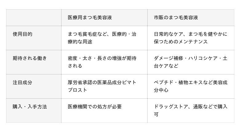 「まつ毛美容液」とひとくちに言っても、医療用と市販品とでは大きく異なります。