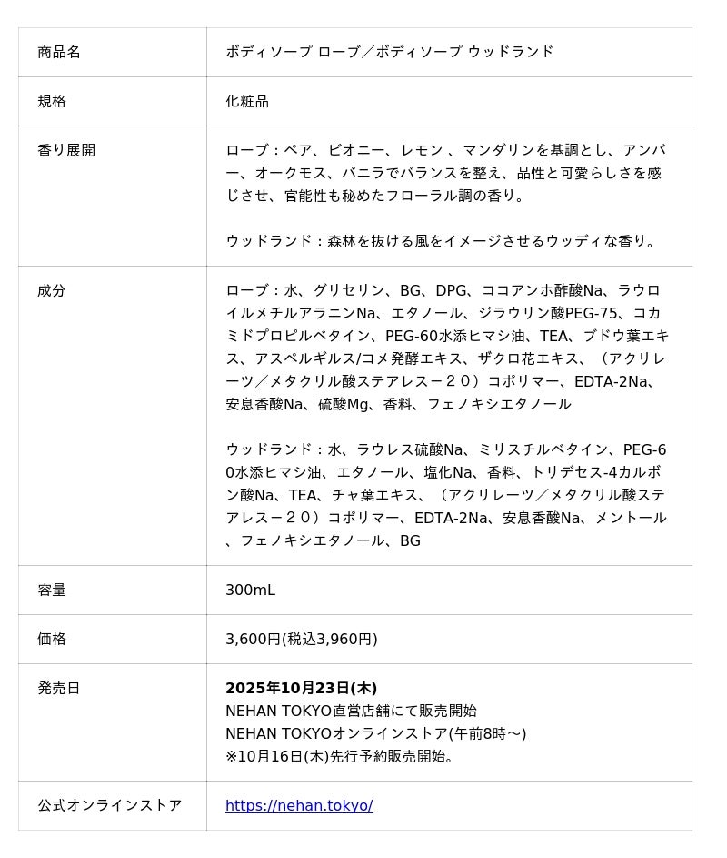 香り・泡立ち・質感のすべてにこだわったNEHAN TOKYOのボディソープシリーズ。