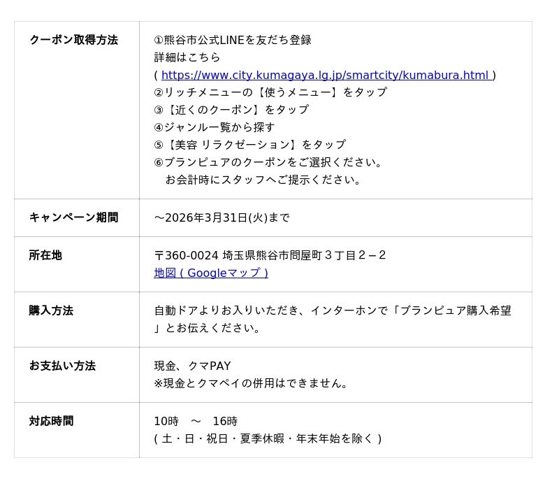 ピュアクリエイト株式会社(本社:埼玉県熊谷市)が運営するスキンケアブランド「BLANC PURE(ブランピュア)」は、熊谷市公式LINEアカウント(クマぶら)で配信するクーポンを活用した「地元応援キャンペーン」を、2026年3月31日(火)まで実施中です。クーポンをご提示いただいたお客様は、ブランピュア商品を20%OFFでお買い求めいただけるほか、ご来店特典として美容液&化粧水サンプルをプレゼント。地域経済の活性化に貢献すると共に、地元の皆様の健やかな肌づくりを応援します。
