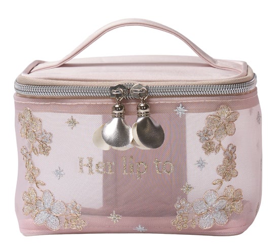 パフュームオイルの煌めきを想起させるゴールドとシルバーのラメ刺繍を施したメッシュバニティポーチは、トレンドのメタリックディテールを取り入れたホリデームードを高める特別なデザイン。軽やかな透け感と華やかさを兼ね備え、コスメやフレグランスの収納にも最適なサイズ感です。特別なホリデーシーズンをより華やかに彩ります。
