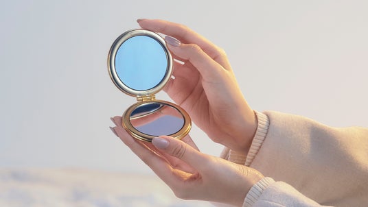 2つ折りミラーは、手のひらに収まる上品なコンパクトサイズ。