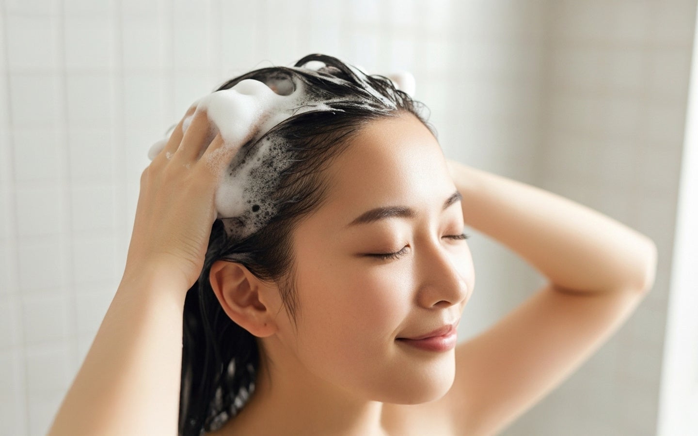 シャンプーは、きめ細かくクリーミーな泡が頭皮と髪を包み込み、