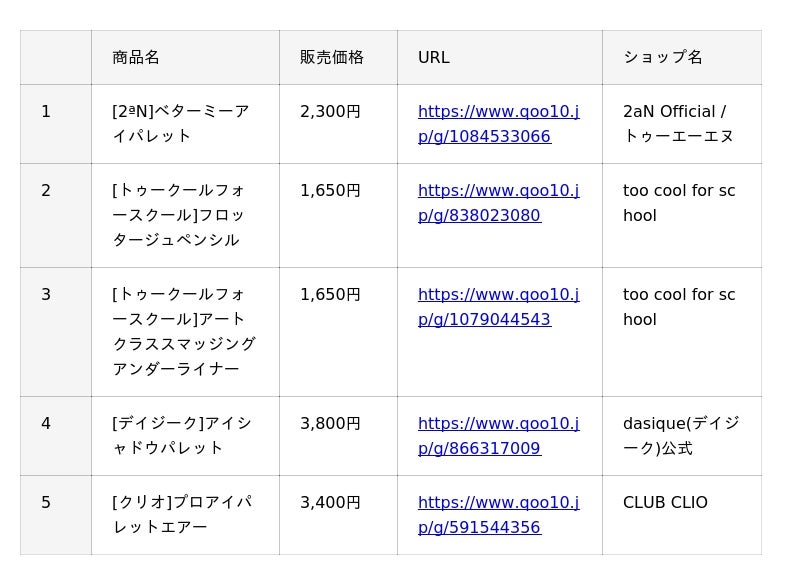 『アイシャドウ』 ランキング
