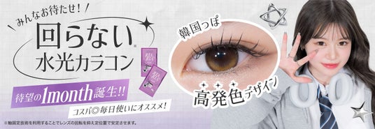 りあちゃんがこだわってプロデュースした『回らない水光カラコン』は、トレンド感たっぷりのデザインで発売以降たちまちSNSで話題に!マンスリー化を望む声が多く寄せられ、遂に発売を開始しました。