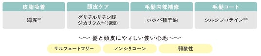1. 海泥※1配合 頭皮をケアしながら、うるおい満ちてまとまる髪へ