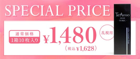TeAmoの乱視用ワンデーカラコンは、いつでも通常価格1箱10枚入りで1,480円(税込1,682円)とお手軽にご購入いただくことができます。