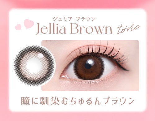 今回乱視用として発売するのはTeAmo1DAYの中でも人気上位にランクインしている「ジェリアブラウン」と「ジェリアベージュ」の2色。太めのフチ×ナチュラルな発色で「瞳をきゅるんと見せるデザイン」「ナチュラルなのに爆盛れ!」と好評をいただいているカラーです。