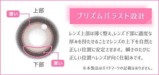 レンズ上部は薄く整え、レンズ下部に適度な厚みを持たせることでレンズの上下を自然と正しい