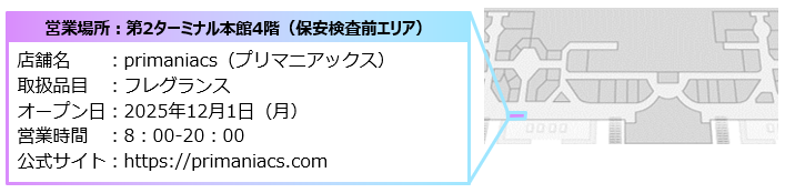 2025年12月1日、第2ターミナル本館4階 AIRPORT MALL内にアニメやコミック、ゲームなどのキャラクターをイメージしたフレグランスを販売する「primaniacs(プリマニアックス)」が新たにオープン!!!