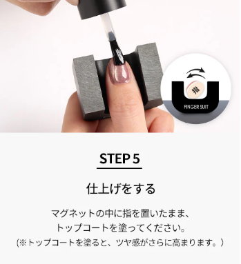 仕上げにトップコートを塗れば、サロン級のマグネットネイルに――