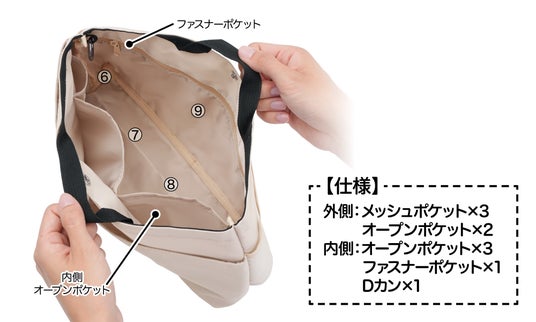 色んなサイズのポケットで収納スペースを無駄なく活用でき、バッグの中がスッキリ!