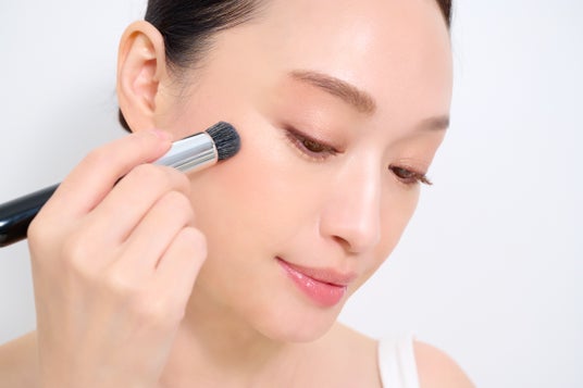 メイクの完成にチークを塗ると、格下はずのシミがまた目立ってくる…