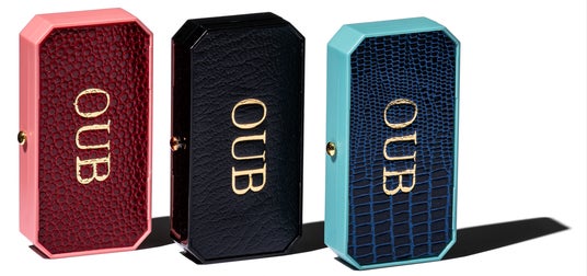 昔ながらの化粧箱を模した美しいリッフバーム。多彩なカラーから選べるケースとベロアのポーチ、そしてレザー調ペーパーにゴールドでイニシャルを刻印して、世界でひとつの優美な贈り物が完成します。