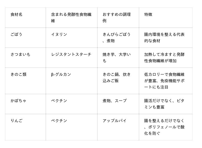 発酵性食物繊維は、腸内細菌のエサとなり、腸内で短鎖脂肪酸を作り出すことで腸を元気にしてくれます 。秋の旬の食材には、この発酵性食物繊維が豊富に含まれており、美味しく腸活ができるチャンスです 。