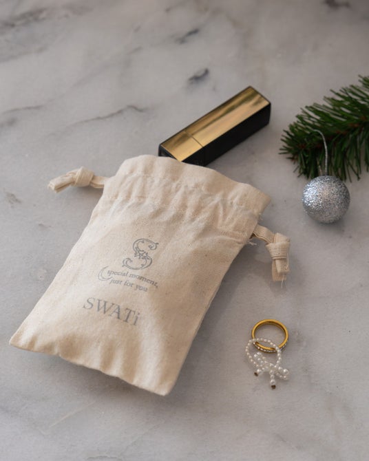※巾着はミニサイズのため、SWATi BATH PEARLは入りません。画像内のアクセサリー・リップなどの小物は付きません。