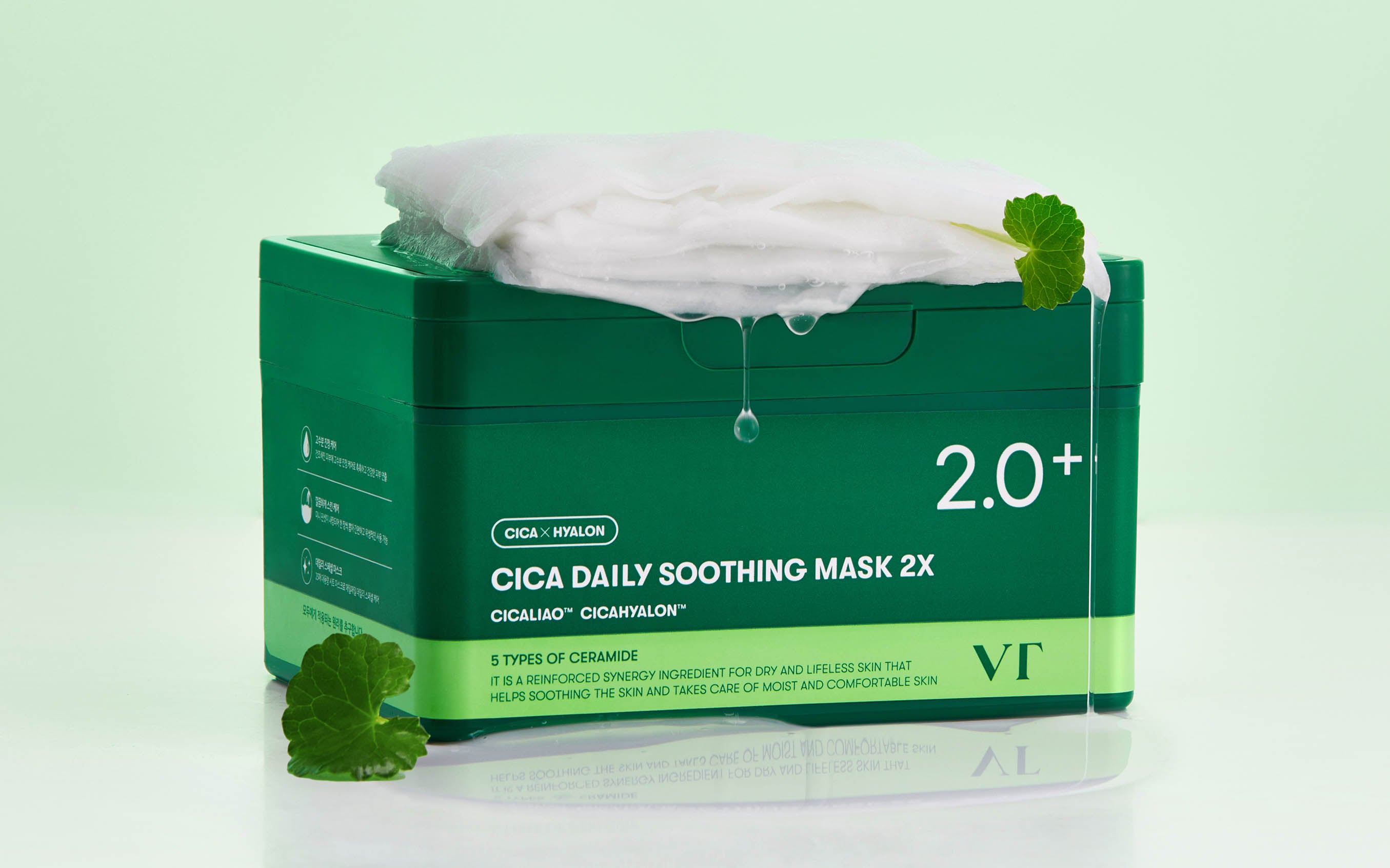 2025年上半期までに累計1,841万箱を売り上げたVTの定番「緑のCICA デイリースージングマスク」が、CICA成分※11を2倍※12に増量した超最強リニューアルバージョンとして登場しました。CICAだけでなく、アラントイン※13やセラミド※14も配合され、ゆらぎやすい肌の方でもより使いやすい仕様に。シートも厚みを増して柔らかく密着するため、従来のCICAマスクファンの方にもぜひお試しいただきたい一品です。