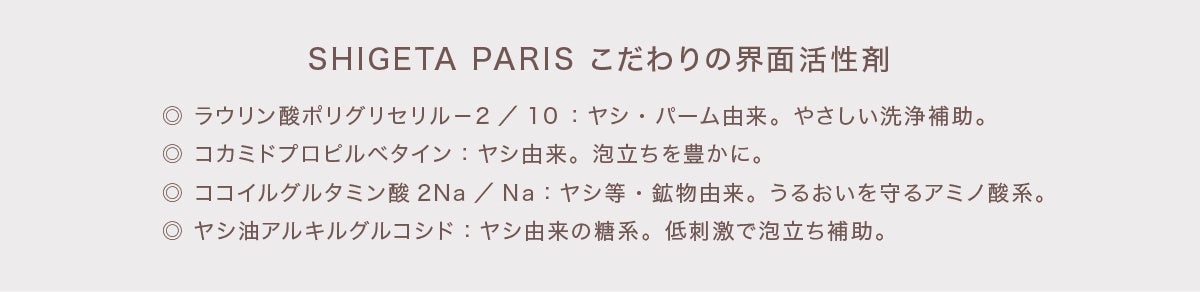 私たちはこれまで、髪と頭皮をしっかり洗いながらも、乾燥させずにやさしく守るという、独自のシャンプーの仕組みにこだわってきました。その実現のために、界面活性剤の処方には特に大きな工夫とこだわりを注いできました。