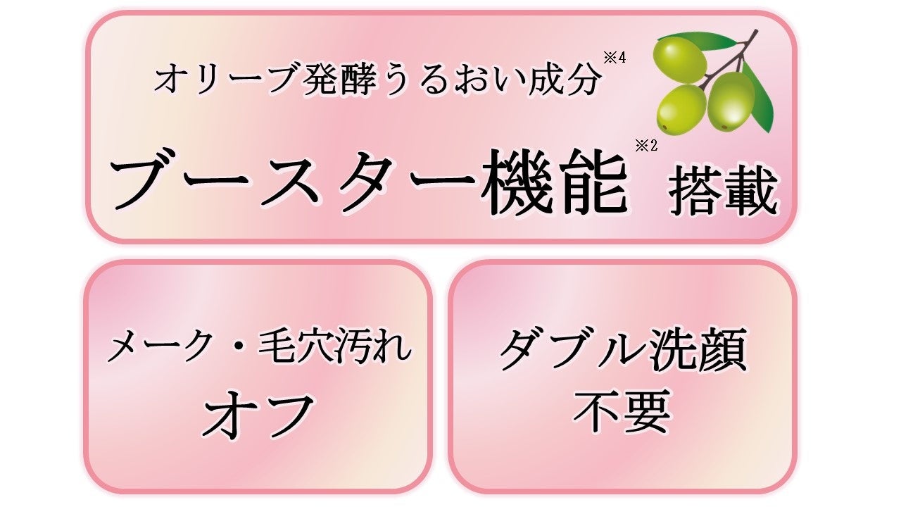 また、4種の植物美容オイル※5でメークも毛穴汚れもすっきりと落とし、シリーズ共通成分「フロール・デ・アセイテ※6」を含む5種の美容保湿成分※7でクレンジング後もうるおった状態の肌に。肌に優しい低刺激設計とダブル洗顔不要で、忙しい毎日でもしっかりと汚れを落とし、うるおいを与えた肌ケアをしたい方にオススメです。