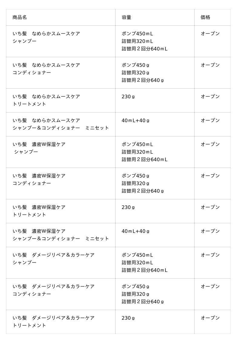 <ご参考:いち髪インバスヘアケア ラインアップ>